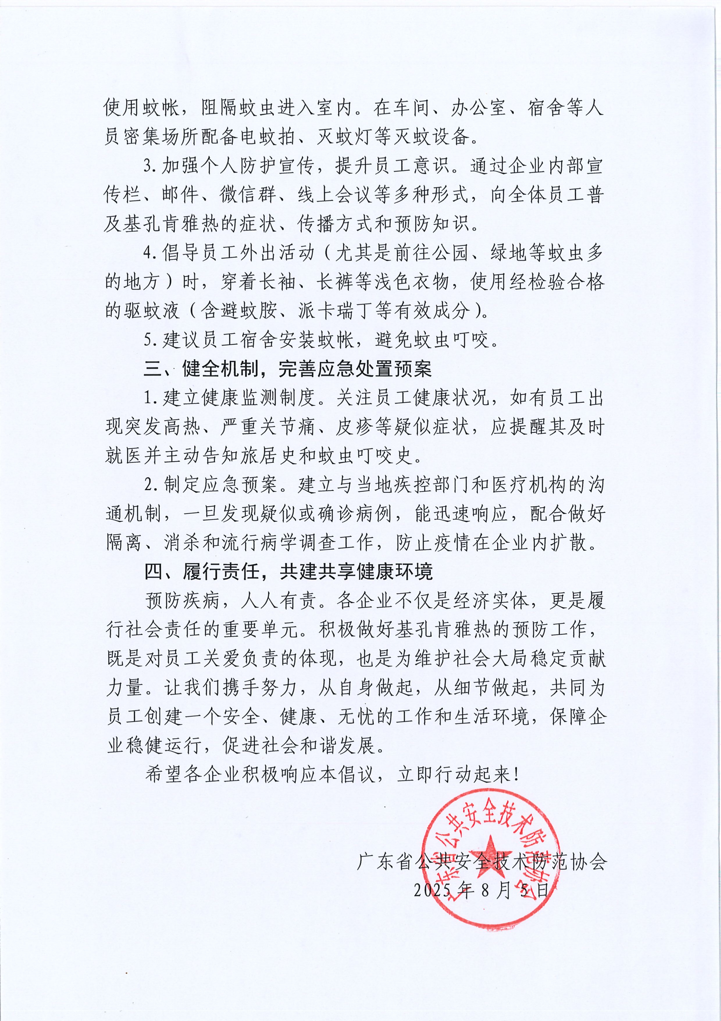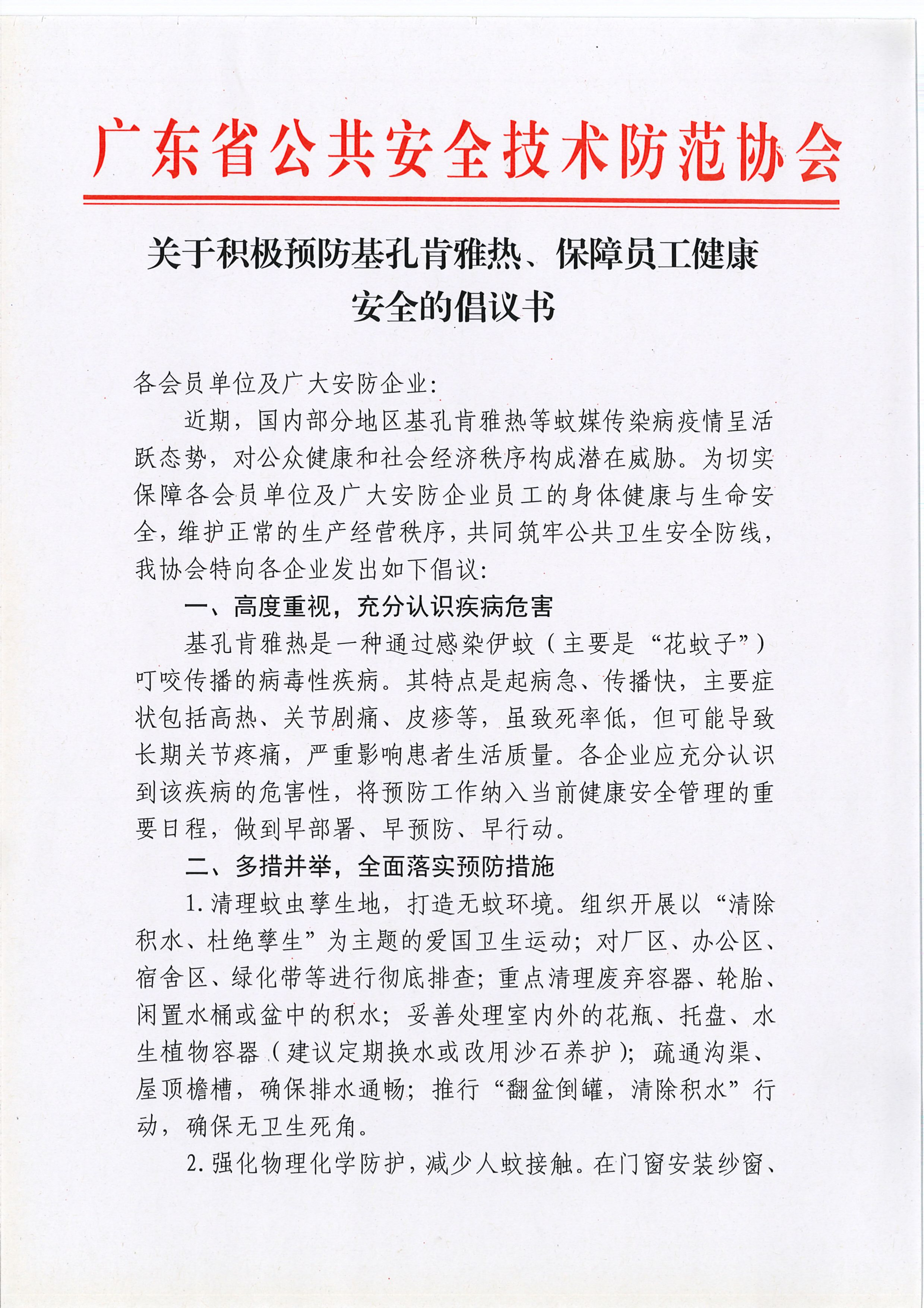 關于積極預防基孔肯雅熱、保障員工健康安全的倡議書
